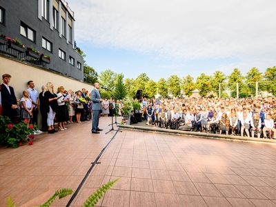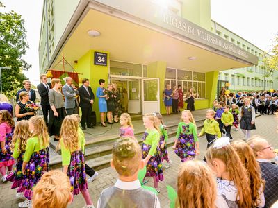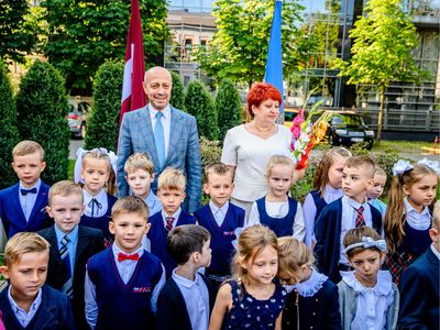 Rīgas domes priekšsēdētājs Oļegs Burovs Zinību dienā sveic Rīgas 13. vidusskolas, Rīgas 64. vidusskolas un Rīgas Teikas vidusskolas skolotājus un audzēkņus.
