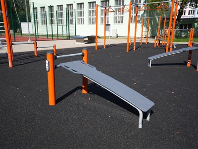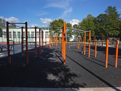 Patlaban skolas teritorijā izbūvēti multifunkcionālie sporta laukumi, kas paredzēti basketbolam ar sertificētiem strītbola groziem, volejbola, rokas bumbas un citu sporta veidu spēlēm, futbola laukums (izmērs 66x43 m) ar mākslīgo segumu, laukums ar dažāda augstuma uzstādītiem basketbola groziem, iesildīšanās laukums, skrejceliņi un tāllēkšanas sektors, uzstādīti ielu vingrošanas trenažieri un galda spēles – galda teniss un tekbola galds, kā arī izbūvēts rotaļu laukums.