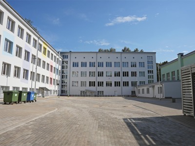 Skolas teritorijā veikti arī teritorijas labiekārtošanas darbi – bruģa seguma ierīkošana, soliņu, velosipēdu, skrejriteņu un skeitbordu turētāju uzstādīšana, atkritumu konteineru nojumes izvietošana, teritorijas žoga izbūve, teritorijas apgaismojums, videonovērošanas un lietus ūdens kanalizācijas tīklu izbūve.