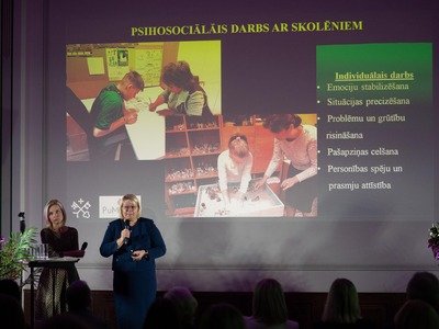 Rīgas skolu vadība, pedagogi un atbalsta personāls tiekas Eiropas Sociālā fonda projekta “Atbalsts priekšlaicīgas mācību pārtraukšanas samazināšanai” (PuMPuRS) noslēdzošajā konferencē “Sadarbība. Virziens. Atbalsts”, lai dalītos savā pieredzē par projekta gaitā iegūtajām atziņām.