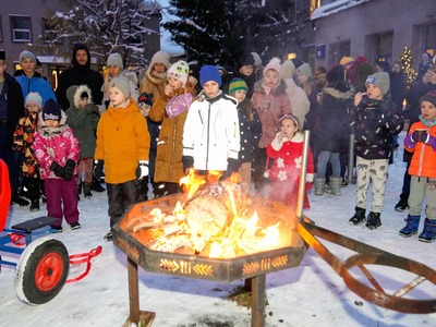 Svētki sākās ar RJTC direktores Ramonas Šmitiņas uzrunu pagalmā pie lielās Ziemassvētku egles, kam sekoja kopīga bluķa vilkšana un dedzināšana, kas, iespējams, ir viena no senākajām Ziemassvētku rituālajām norisēm, kas simbolizē Saules un gaismas augšupeju. Visi pasākuma apmeklētāji iekštelpās varēja piedalīties koncertā un radošās darbnīcās.
